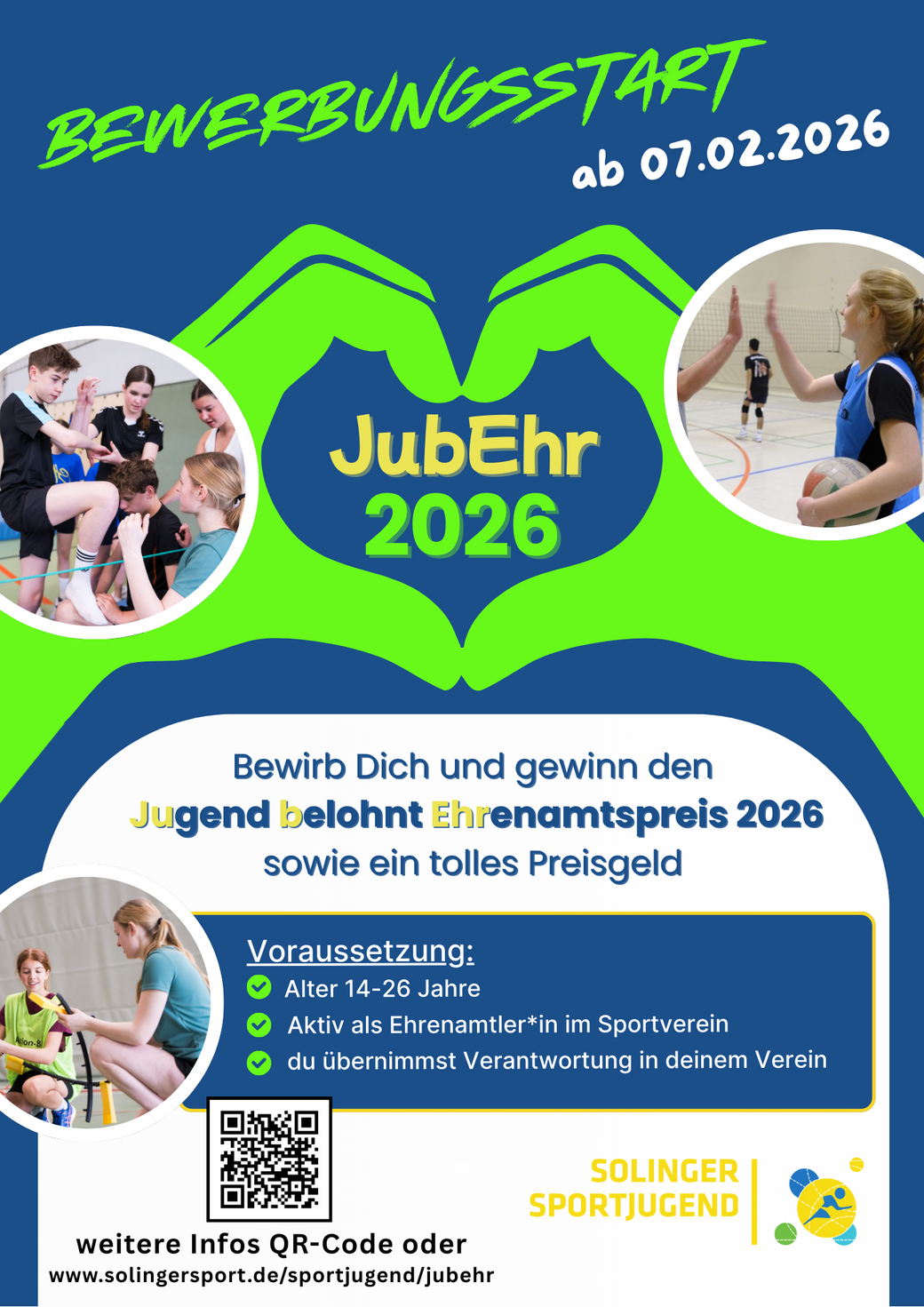 Du engagierst dich in einem Sportverein? Egal ob Jugendwart, Trainer, Vorstand, Zeugwart…., jede/ jeder im Alter von 14-26 Jahren darf sich mit oder ohne Qualifizierung (Sporthelfer, ÜL- C,…) bewerben.